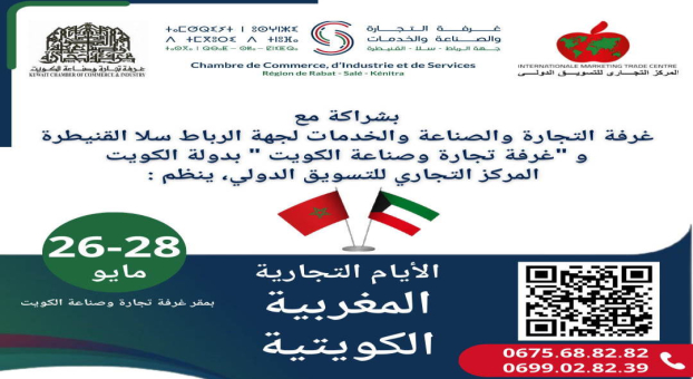 شاركوا في الأيام التجارية المغربية - الكويتية، المقررة من ألى 26 مايو 28 2024 في مقر غرفة تجارة وصناعة الكويت، لاستكشاف فرص الأعمال والشراكات في سوق الكويت والخليج.