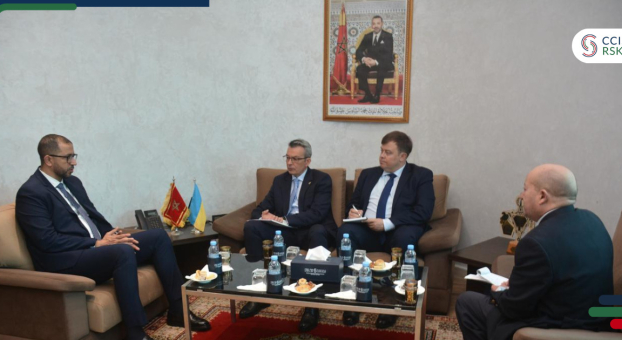 Lundi 06 Avril 2026, Monsieur Hassan SAKHI, Président de la Chambre de Commerce, d’Industrie et de Services de la Région Rabat-Salé-Kénitra (CCISRSK), a reçu en audience S.E.M. Serhii Saienko, Ambassadeur extraordinaire et plénipotentiaire d’Ukraine au Royaume du Maroc, accompagné de M. Oleksandr Varzatskyi, Premier Secrétaire aux affaires économiques.