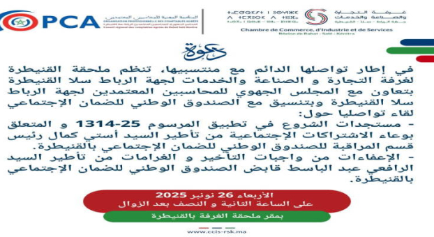 غرفة التجارة والصناعة والخدمات لجهة الرباط سلا القنيطرة تعقد الدورة العادية الثانية للجمعية العامة للغرفة برسم سنة 2025.