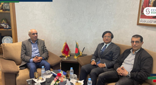 Lundi 30 Mars 2026, Monsieur Rachid SAMI, et Yassir SEBBAR, respectivement Vice-Présidents de la Chambre de Commerce, d’Industrie et de Services de la Région Rabat-Salé-Kénitra, se sont entretenu avec Monsieur Rajib Tripura, Conseiller à l’Ambassade de la République populaire du Bangladesh au Maroc.